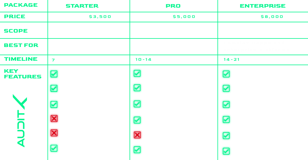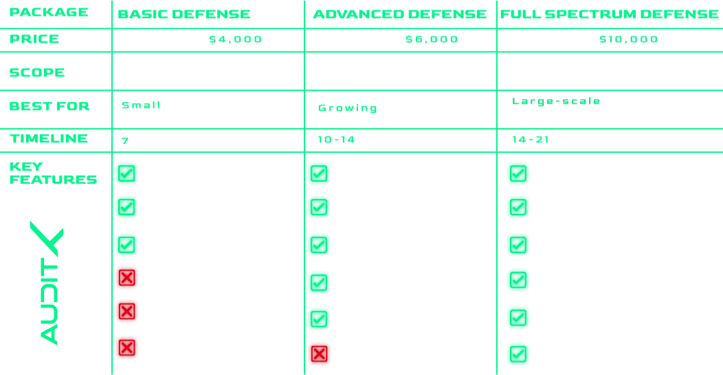 Explore tailored solutions for your project’s unique needs. From smart contract audits to penetration testing, we deliver security you can trust.